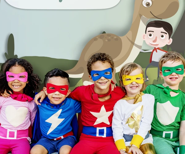 Escolha uma cor e vista toda a criança com ela: camiseta, calça ou bermuda. Faça uma máscara de feltro da mesma cor e crie, também com o feltro, um elemento de super herói, como estrelas, raios ou coração. Com um pedaço de tecido, faça uma capa da mesma cor e munhequeiras. Prontinho, seu super-herói está pronto para a batalha!